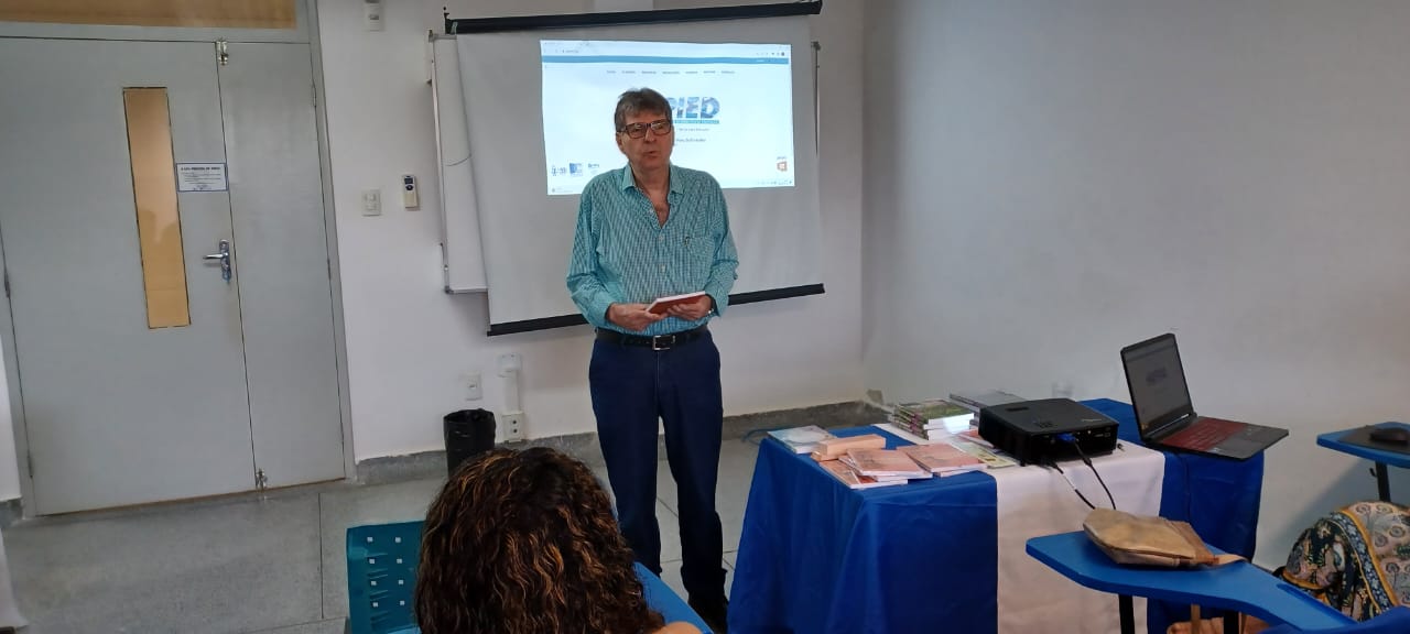 Em 22/09/23, o GEPIED e convidados se reuniram na sala de apresentação do DCOMP para lançar o livro “Como fazer o bom uso das tecnologias digitais” e o site do grupo. O professor Dr. Henrique Nou Schneider apresentou o conteúdo do site, revisitando os eventos, pesquisas e publicações do grupo. Em seguida, explicou como surgiu no grupo a discussão do tema do livro e o processo de organização.